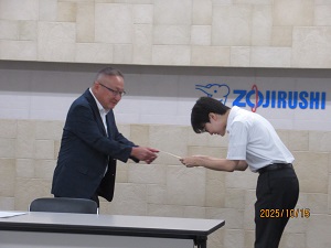 23名の採用された留学生のうち、21名に参加頂き、象印マホービン株式会社代表取締役社長執行役員から激励のお言葉を頂きました。