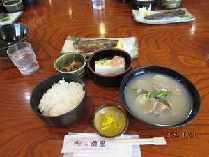 市内でその日お世話になる小里アリサさんと合流し、お昼は南里さんの貝汁に舌鼓。